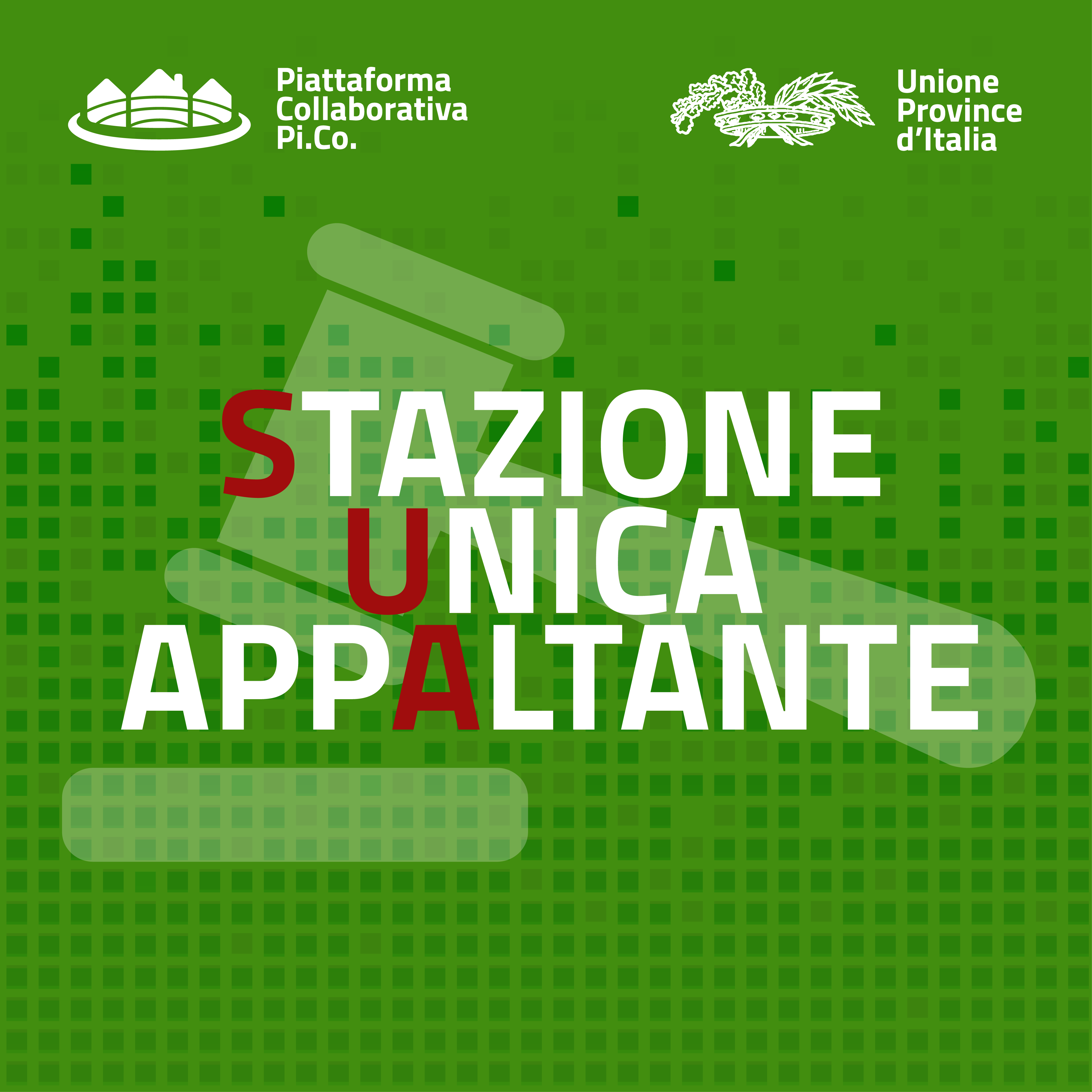 Il modulo “Stazione Unica Appaltante” (SUA) della Piattaforma Pi.Co., è un applicativo informatico sviluppato per permettere agli Enti Pubblici convenzionati con una Provincia di richiedere supporto per la gestione di una gara d’appalto (gara su delega). Inoltre, ciascuna Provincia aderente a Pi.Co. può utilizzare il modulo SUA per raccogliere in modo strutturato i fabbisogni di acquisto dei propri Enti di riferimento e metterli a fattor comune in un’iniziativa di gara “aggregata”. Il modulo SUA è quindi un ambiente collaborativo che consente di migliorare l’efficacia degli appalti pubblici tramite numerose funzionalità.