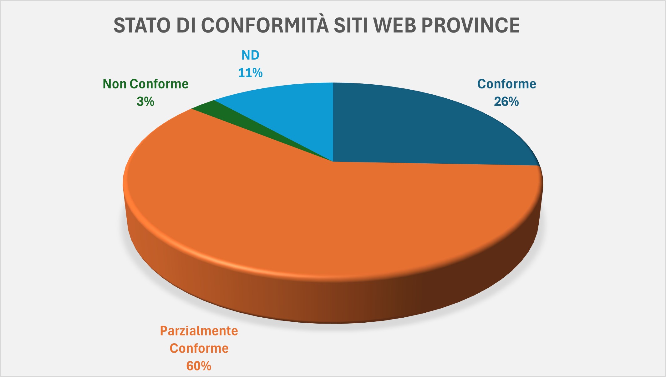mentre per le Province (78), addirittura il 26% (20 Enti) si dichiara Conforme.